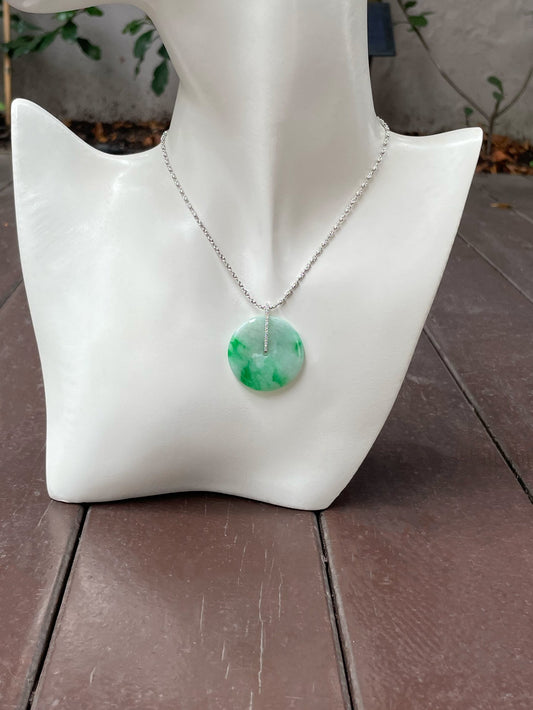 Green Jadeite Safety Coin Pendant - 平安扣 (NJP043)