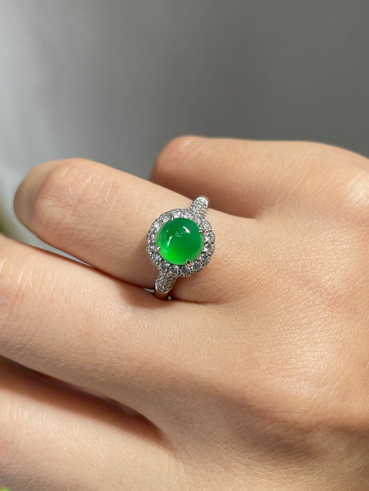 Icy Green Jadeite Cabochon Ring (NJR002)