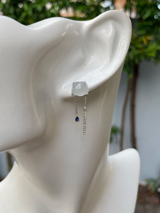White Jadeite Earrings - Fluffy Clouds (NJE190)