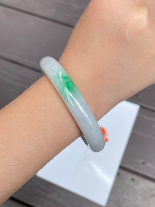 White with Green Jade Bangle | 60mm (NJBA102)