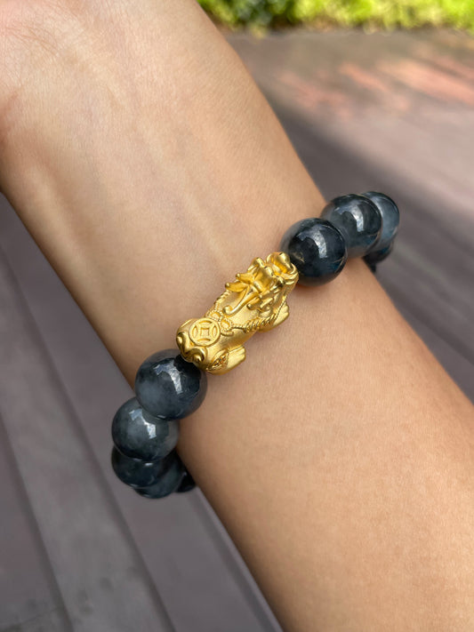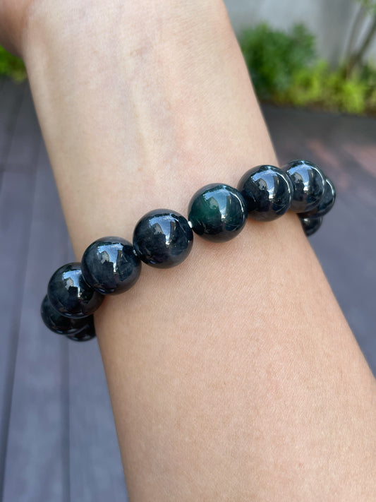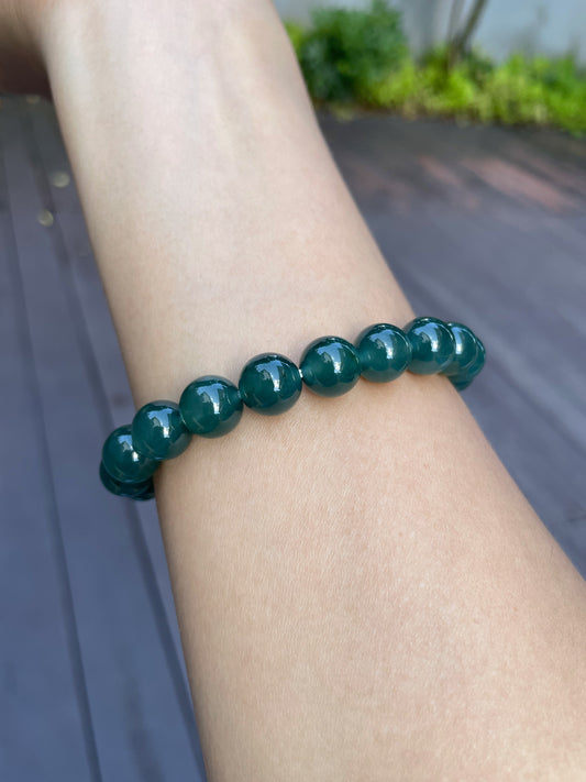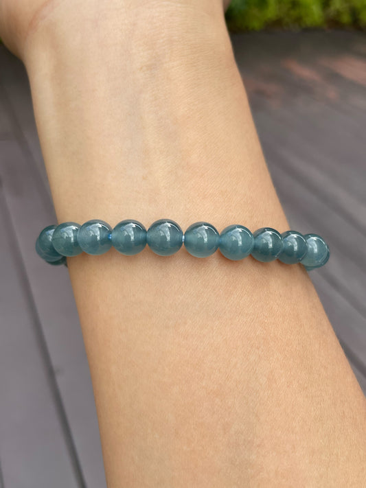 Bluish Green Jade Bracelet - Round Beads (NJBA064)