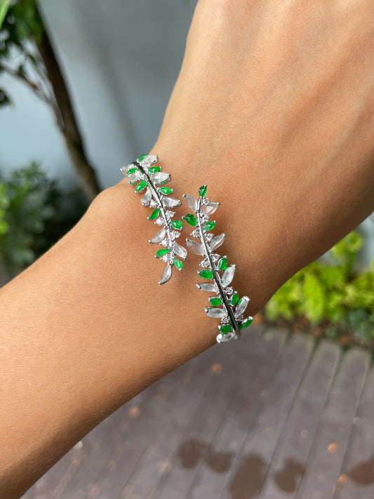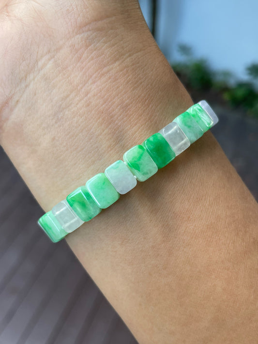 Green & Icy White Jadeite Bracelet (NJBA171)