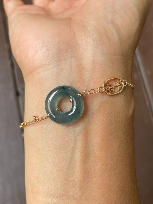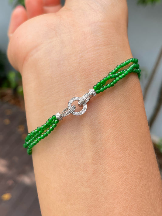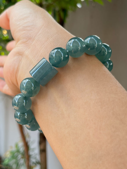 Bluish Green Jade Bracelet - Round Beads (NJBA152)