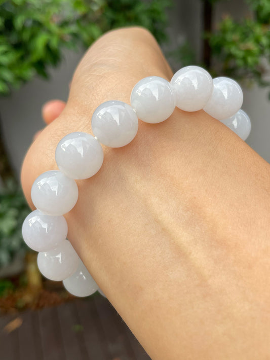 White Jadeite Bracelet - Round Beads (NJBA132)