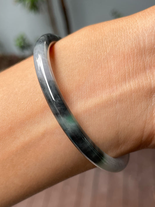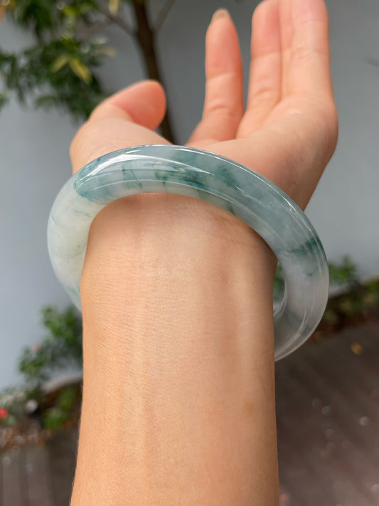 Bluish Flower Jade Bangle | 57mm (NJBA134)