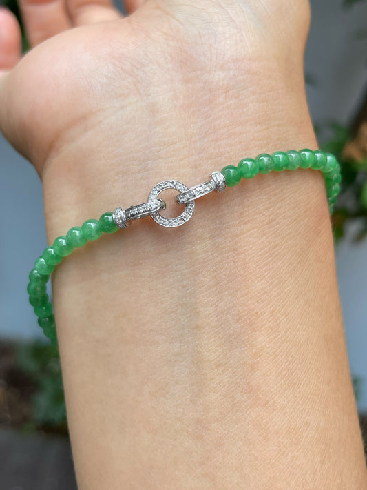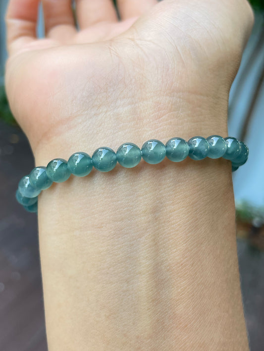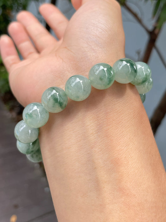 Icy Green Jadeite Bracelet - Round Beads (NJBA137)
