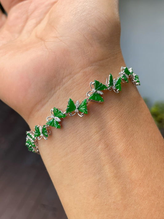 Green Jadeite Bracelet - Butterflies (NJBA178)