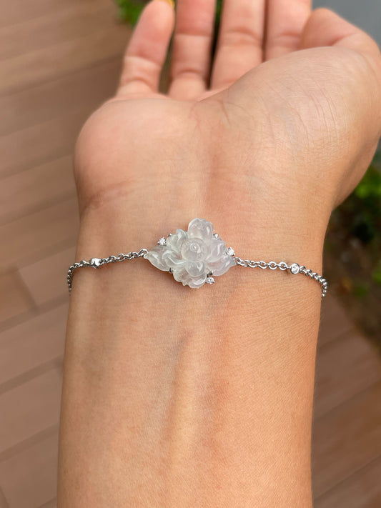 Icy White Jade Bracelet - Lotus Flower (NJBA181)