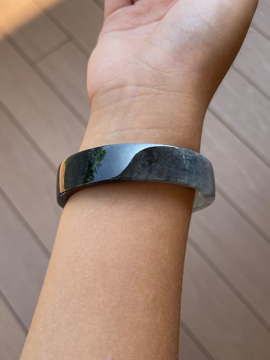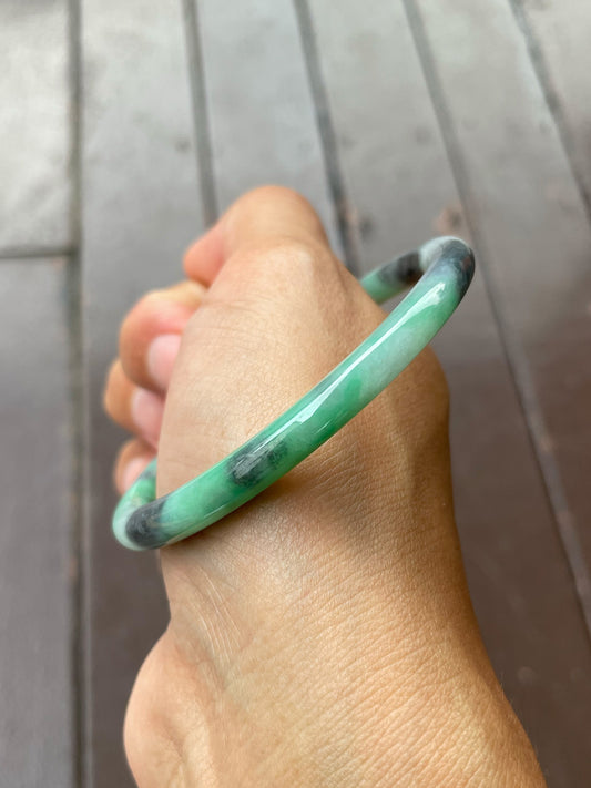 Green With Black Jade Bangle | 56mm (NJBA182)