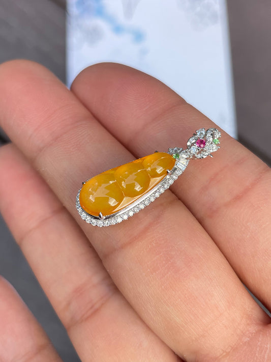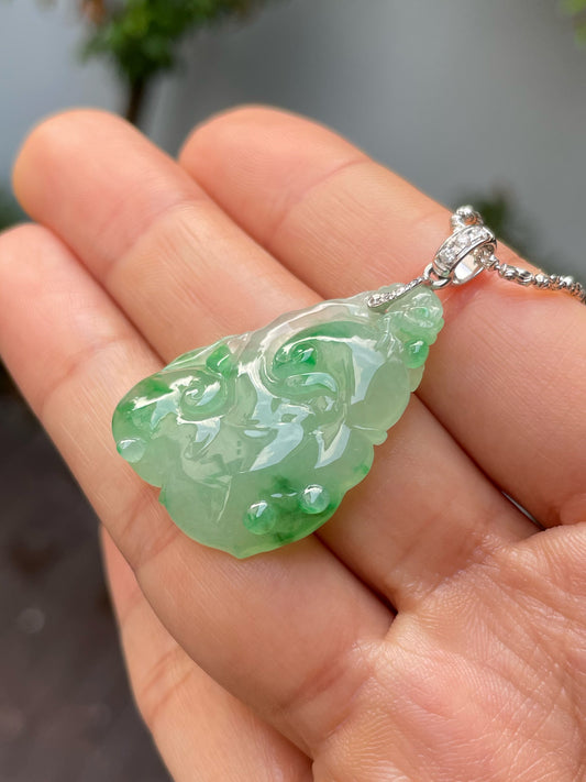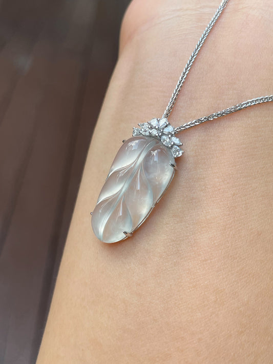 Icy Jadeite Pendant - Leaf Carving 叶子 (NJP015)