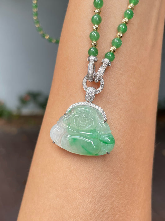 Green Jade Pendant - Laughing Buddha 笑佛 (NJP090)