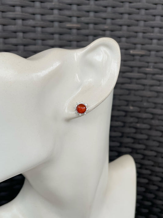 Orangey Red Jade Cabochon Earrings (NJE270)