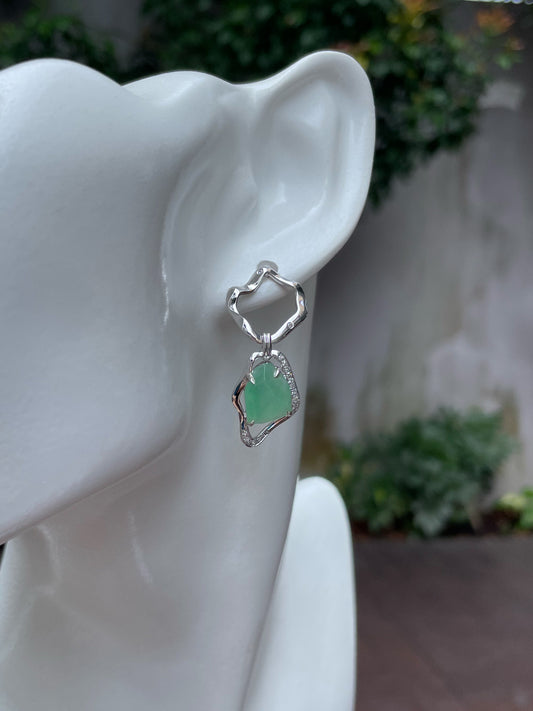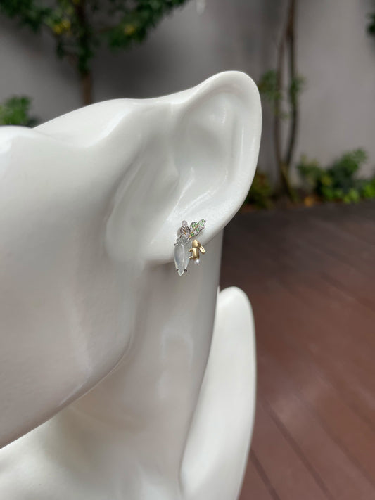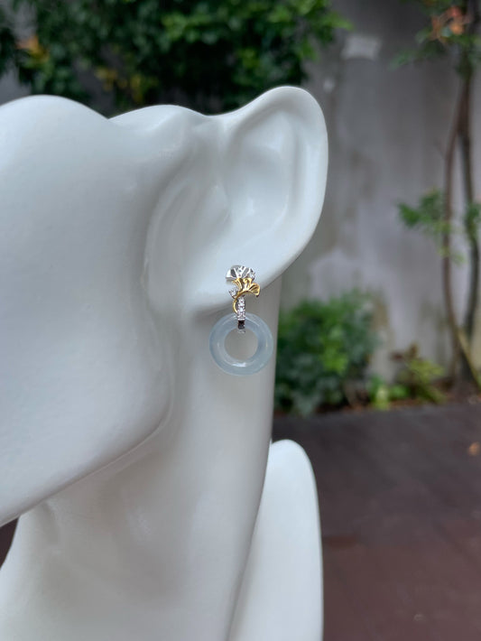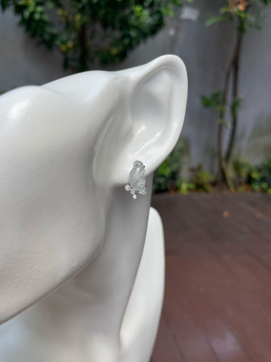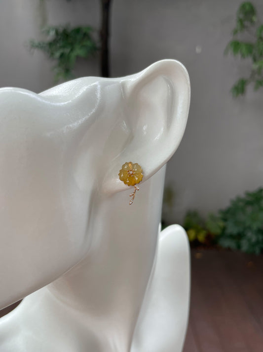 Icy Yellow Carved Jade Earrings - Plum Blossoms (NJE130)