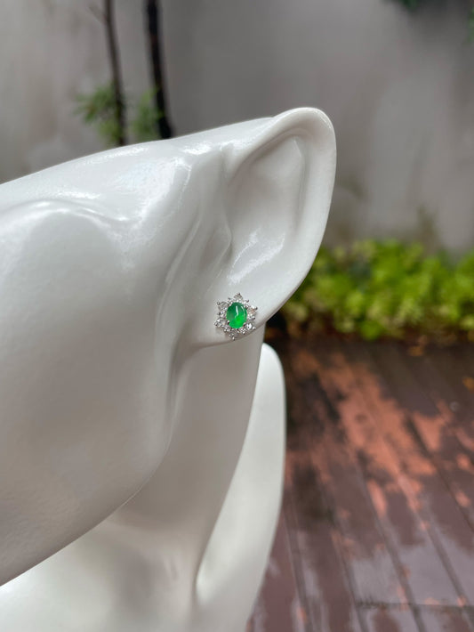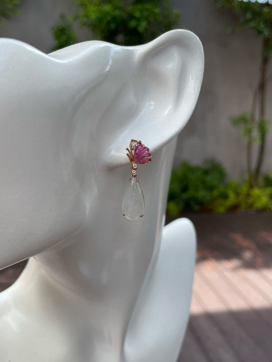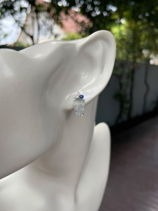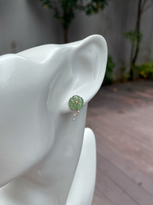 Glassy Jade Earrings - Leaf Carvings (NJE110)