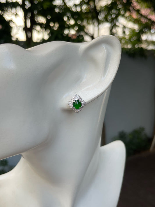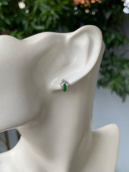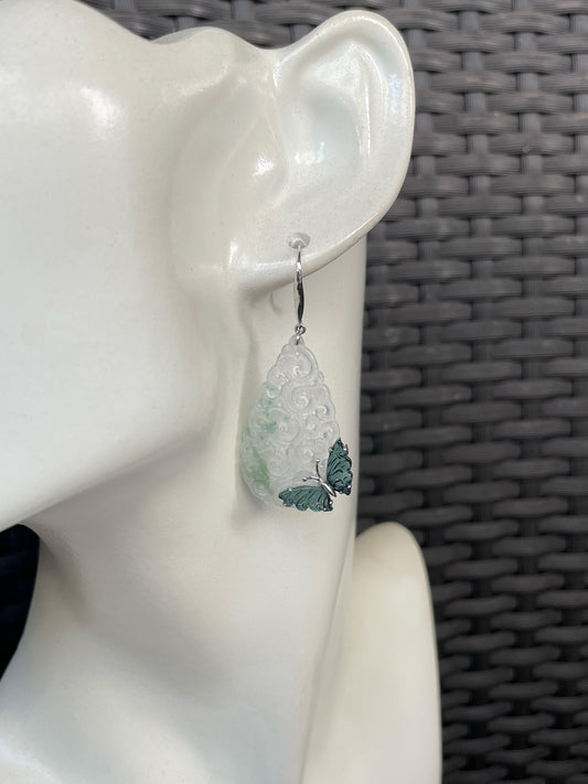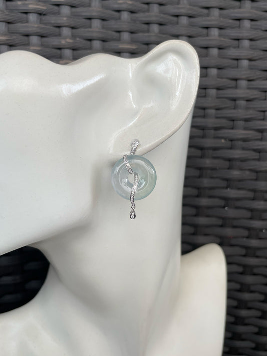 Icy White Jadeite Earrings - Ruyi (NJE232)