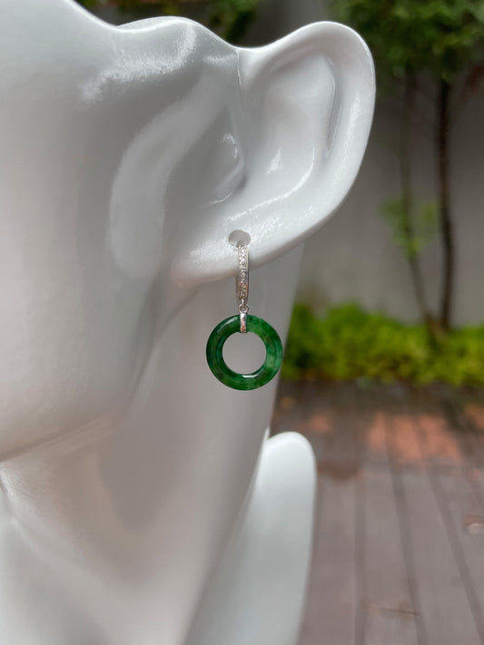 Dark Green Jadeite Earrings - Hoop Shaped (NJE005)