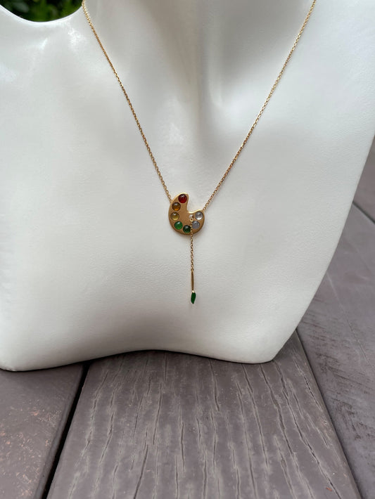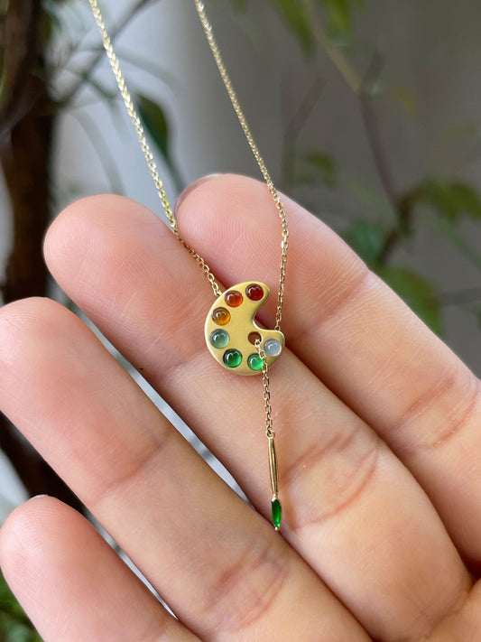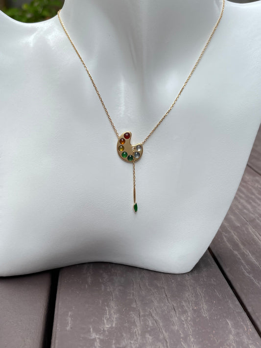 Paint Palette Jade Pendant with Necklace (NJN013)