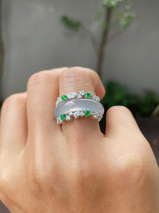 Icy Bluish Jade Abacus Ring | HK 18 (NJR227)