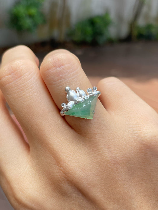 Icy Green Jade Ring - Iceberg with Penguins (NJR140)