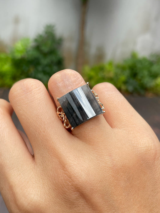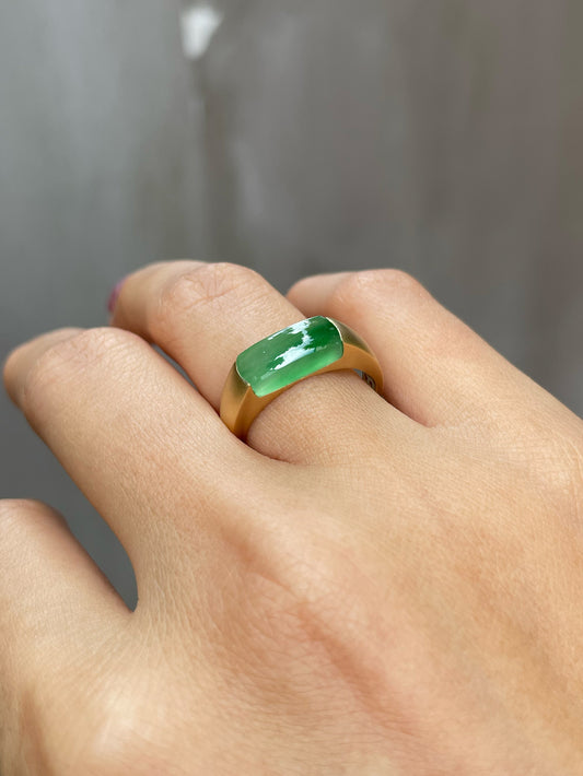 Glassy Jade Cabochon Ring (NJR128)