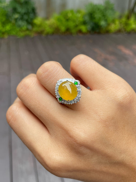 Icy Yellow Jade Cabochon Ring (NJR130)