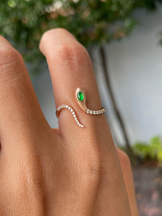 Green Jade Cabochon Ring - Snake (NJR300)