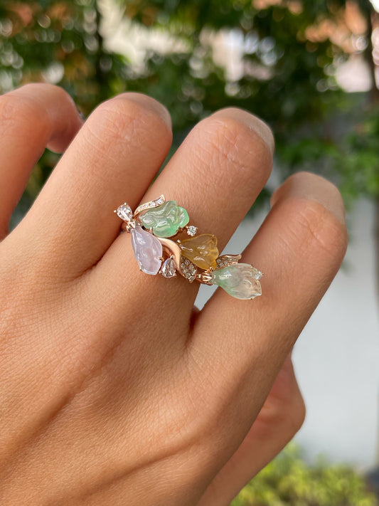 Multicoloured Jade Ring - Magnolia (NJR302)