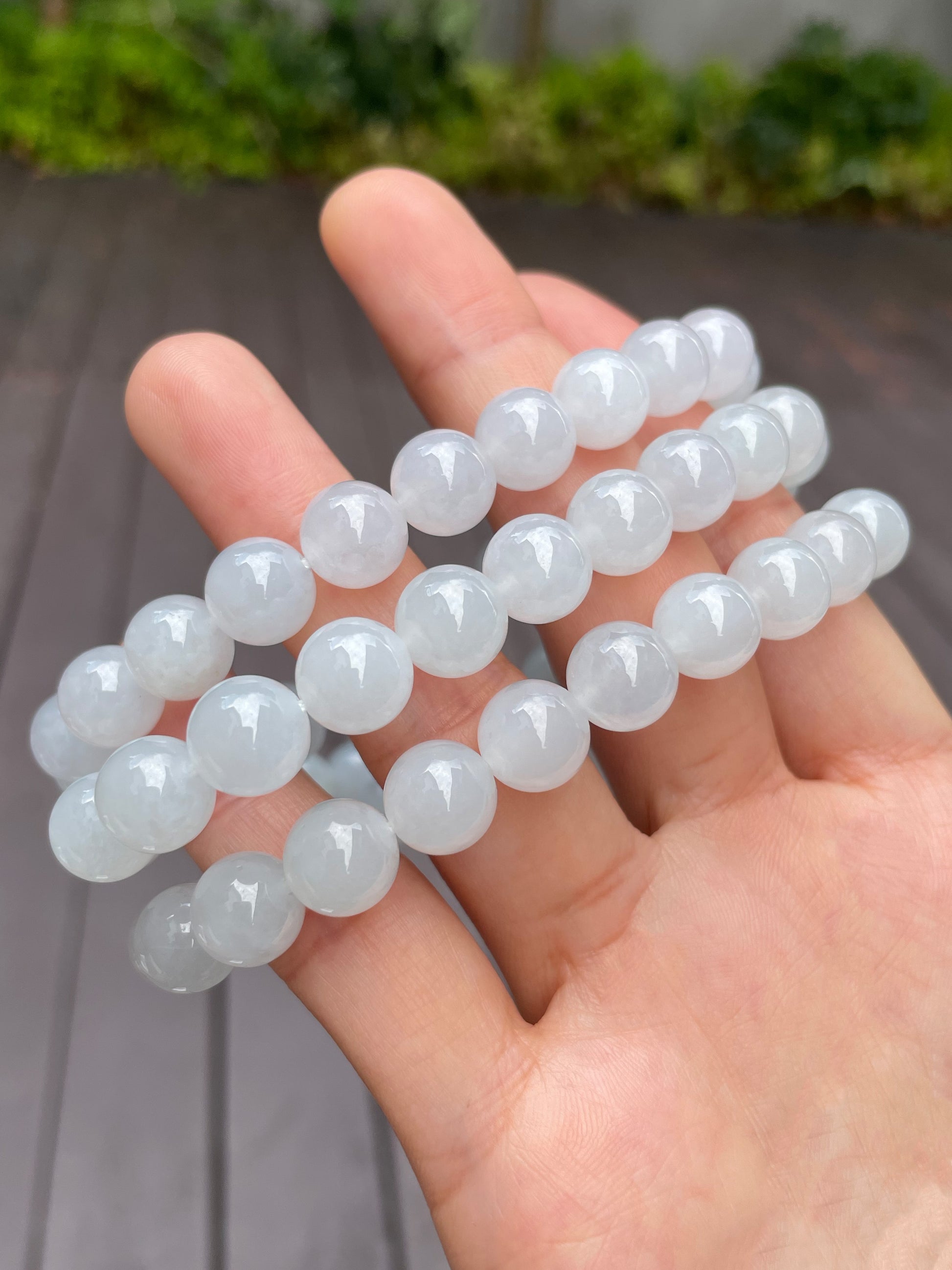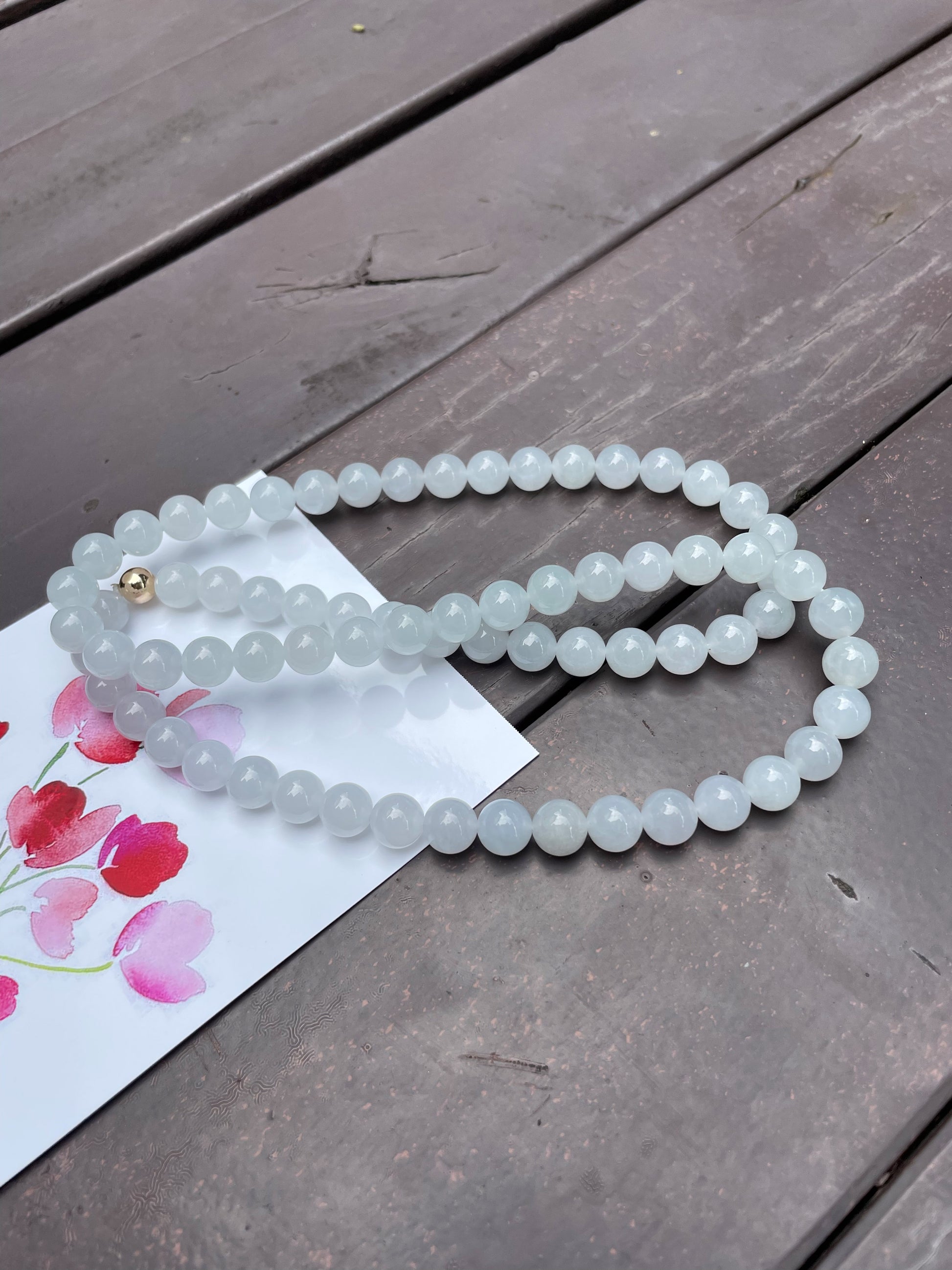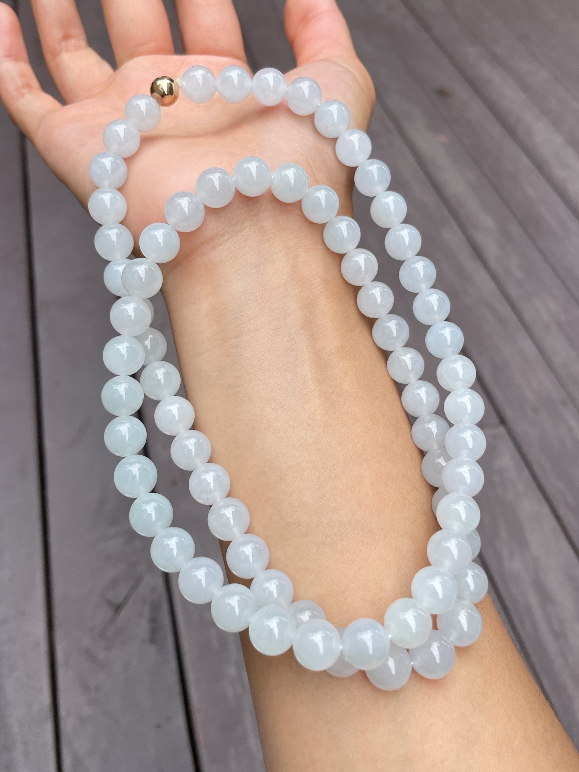 Complementing the icy white hue, is the fine finishing polish of the jade beads. The jadeite material has a dense crystal structure which allows for the finishing polish to impart a beautifully lustrous shine to the white jade beads. The glossy white jadeite beads necklace offers an elegant embellishment that can be easily matched to any outfit.