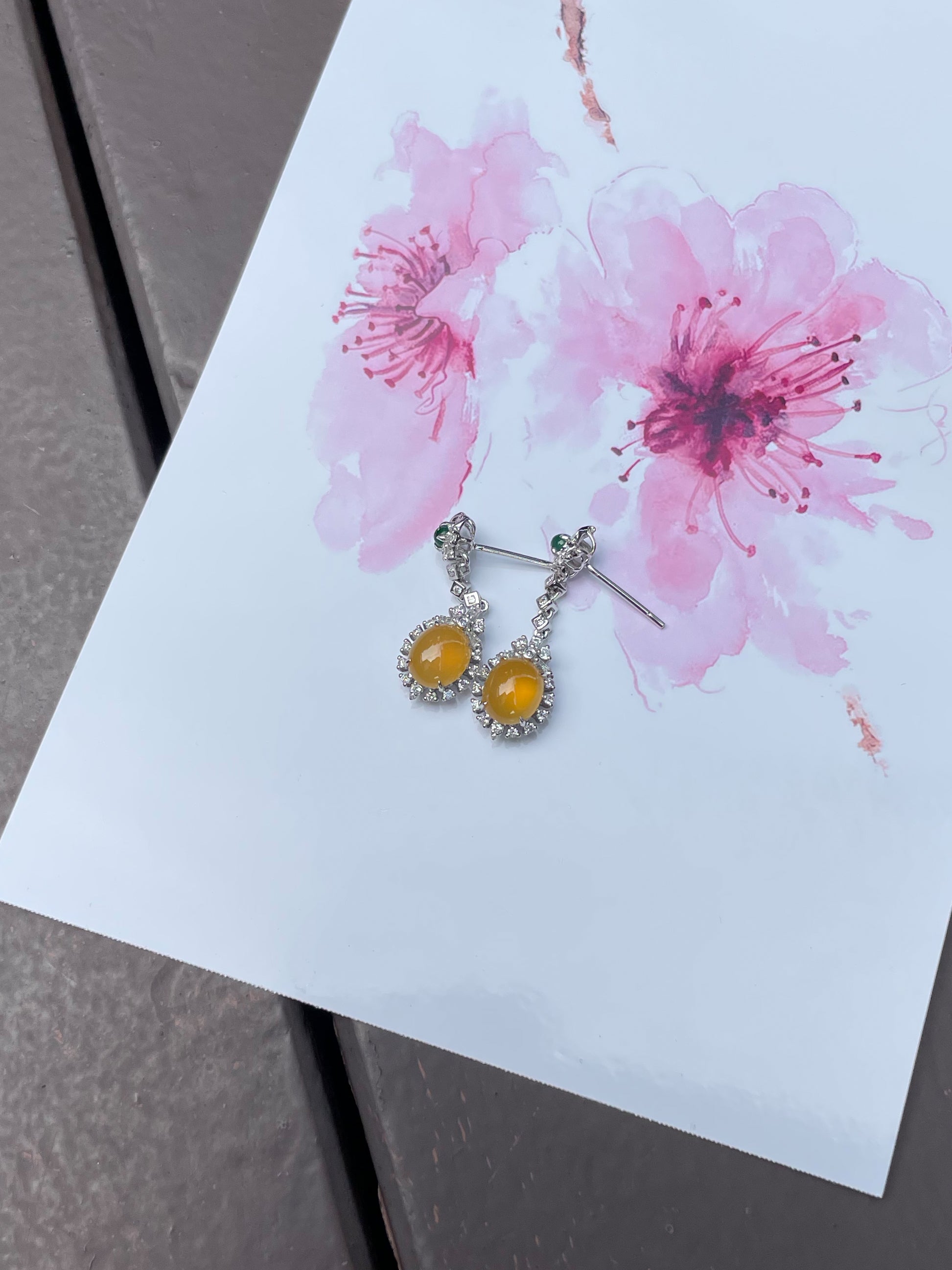 Icy Yellow Jade Cabochon Earrings (NJE032)