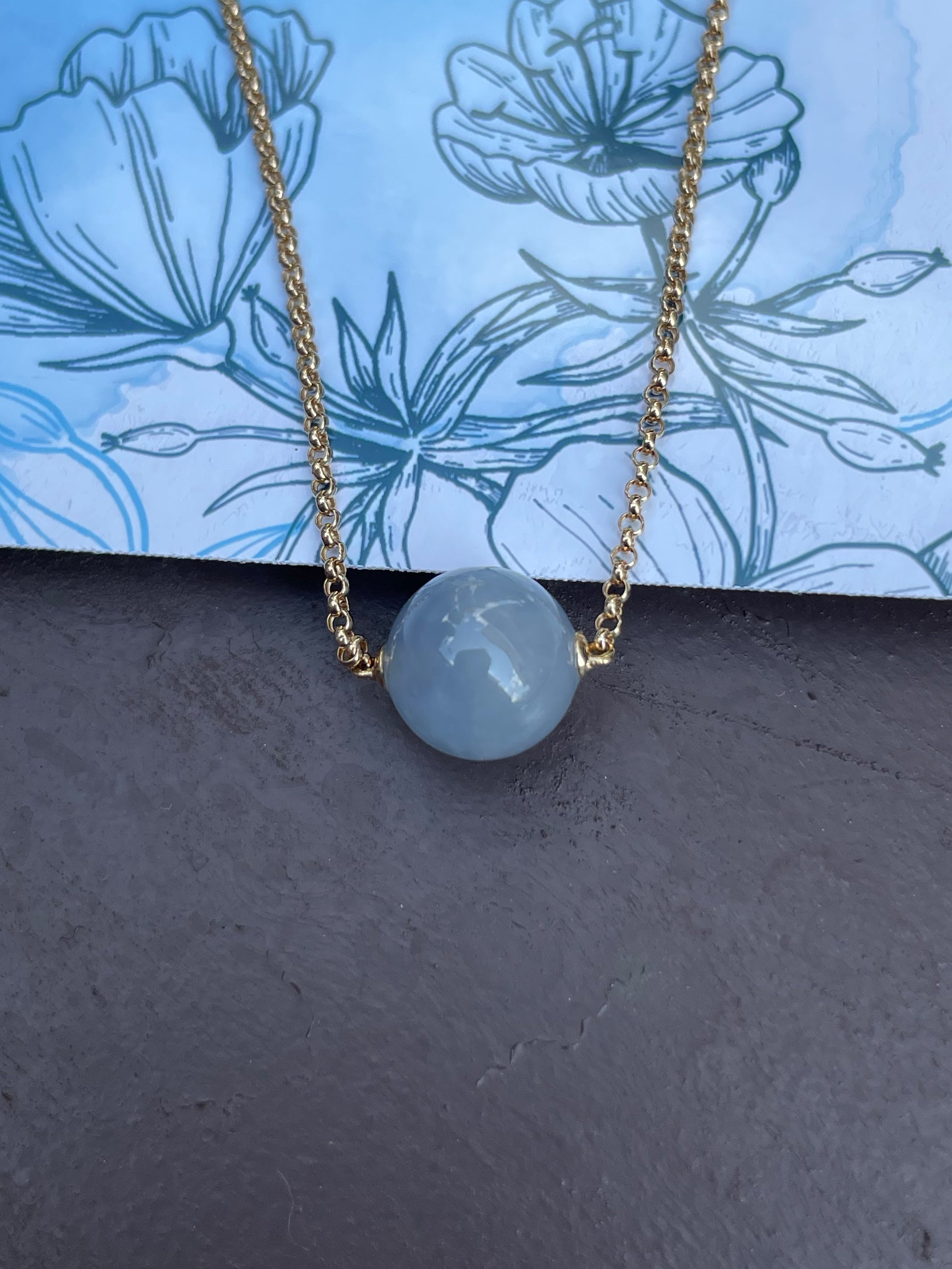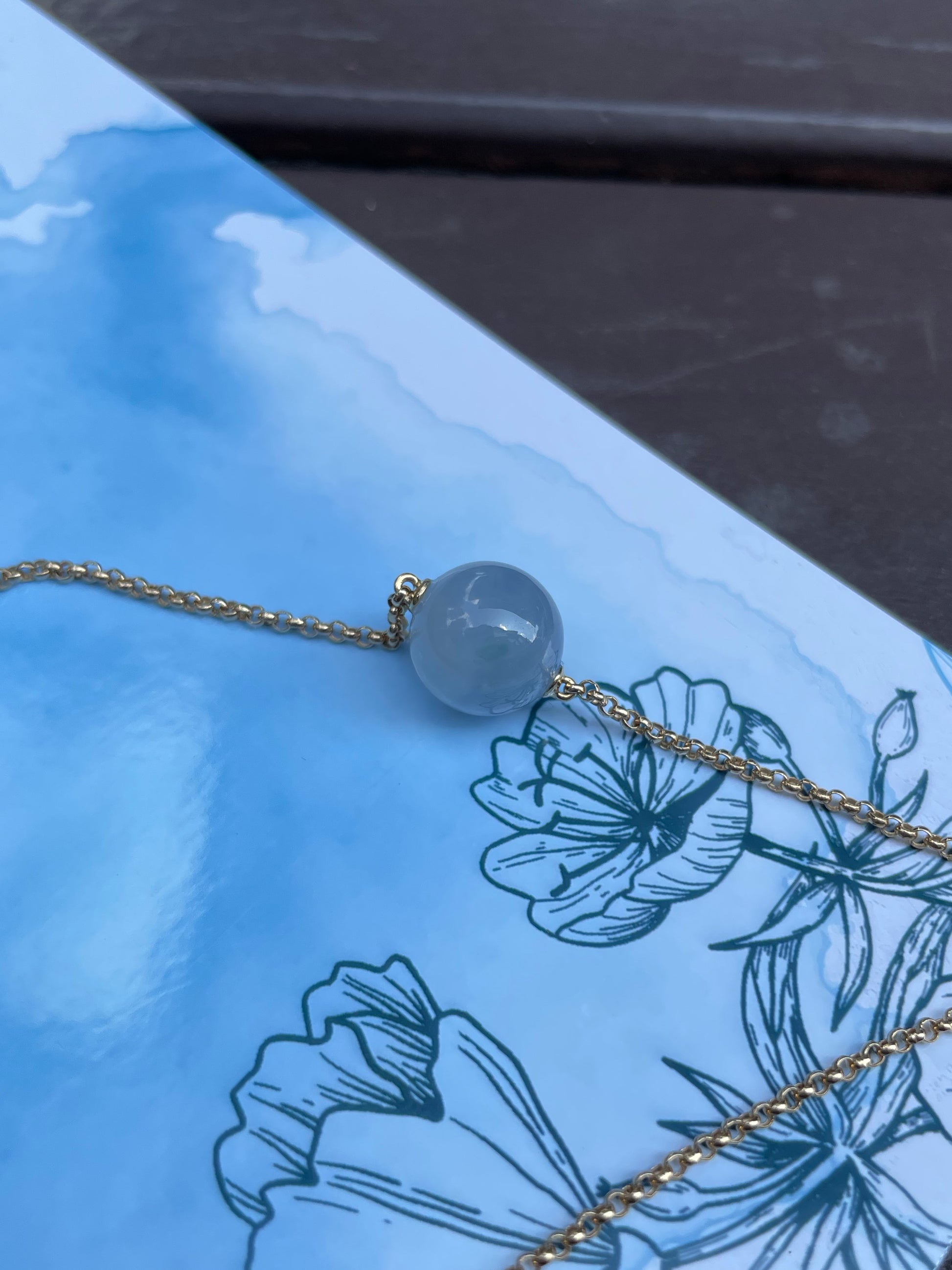 Jadeite bead is set with a 18K yellow gold chain. The jade bead is attached to the 18K gold chain and cannot be removed.