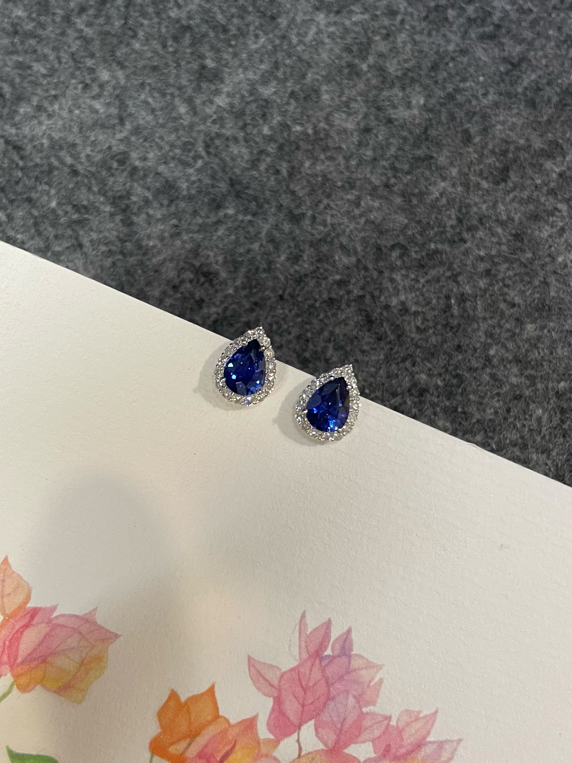 Blue sapphire pair weighs 2.11 carats in total.